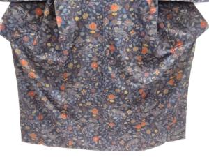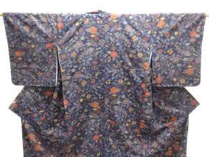 未使用品 仕立て上がり 蝶に草花模様織り出し手織り紬着物