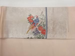 屏風に雉・花々模様織出し名古屋帯