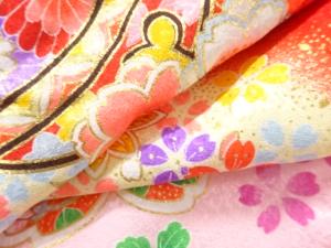 鈴に草花模様子供着物(長襦袢・内袖付き)