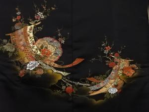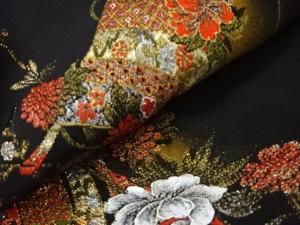 漆 几帳に花模様織り出し 絵羽織