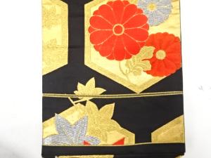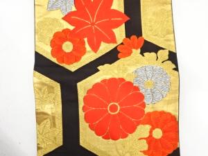 アンティーク 亀甲に菊・楓模様織り出し袋帯(着用可)