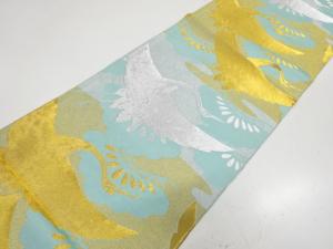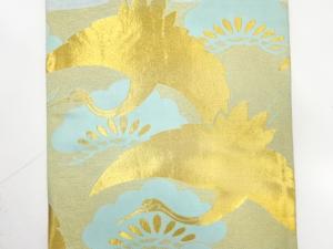 アンティーク 群鶴に笠松模様織り出し丸帯(材料)