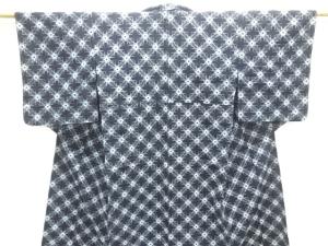 アンティーク 木綿本場久留米絣 斜め格子に枡模様単衣着物