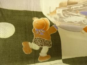 アンティーク 飛行機・自動車模様男物長襦袢