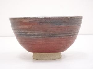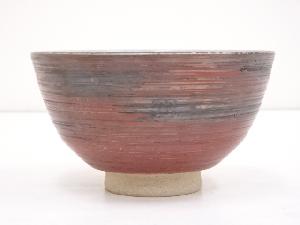 膳所焼 陽炎園窯 岩崎新定造 赤地刷毛目茶碗