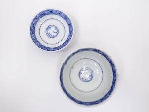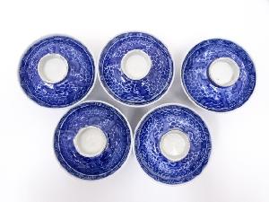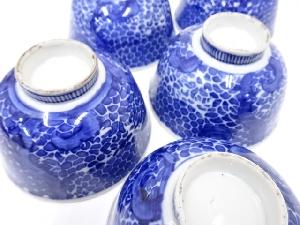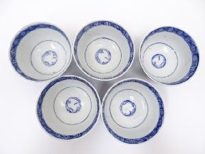 明治期 伊万里焼 染付蓋茶碗5客