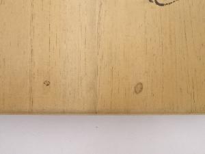 木箱の底裏に書き込みがあり、所々にシミがあります。