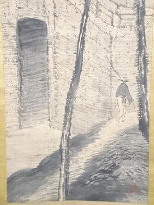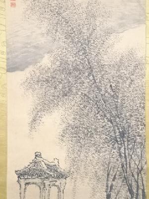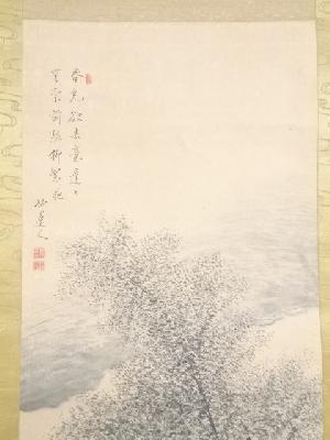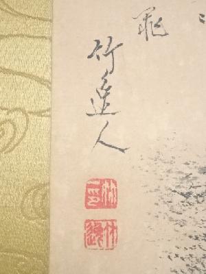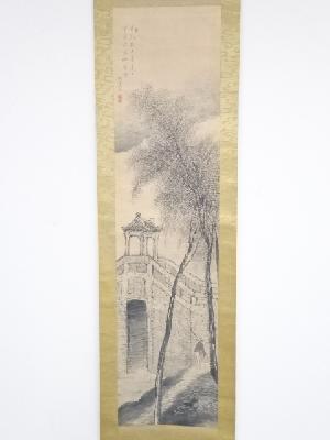 平野竹逸筆 風景図 肉筆紙本掛軸(共箱)