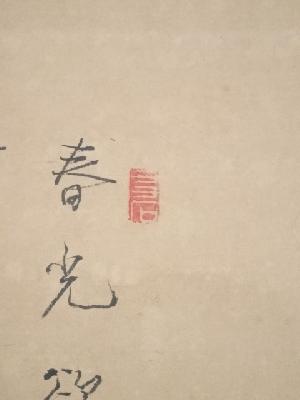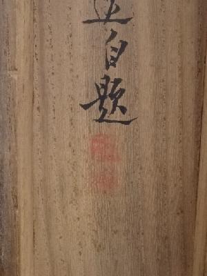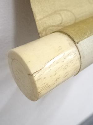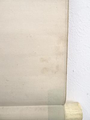 表具:裏側の八双にシミ、裏側の軸棒付近にシミがあります。