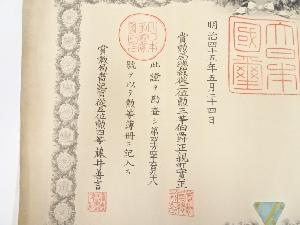 勲記のみの商品です。勲章はありません。