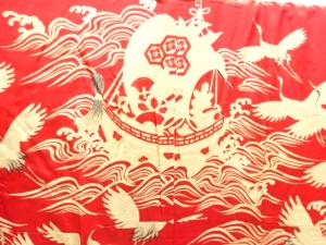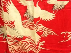 アンティーク 荒波に群鶴模様長襦袢
