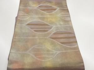 引箔変わり葉に横縞模様織出し名古屋帯