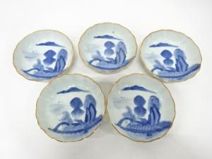 古伊万里 染付 山水 なます皿 5客揃