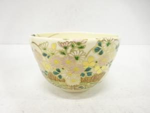 玄山窯造 金彩色絵 花 茶碗
