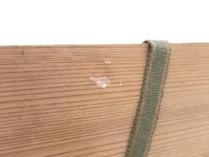 木箱の蓋の桟が取れています。