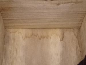 木箱の内側にシミがあります。