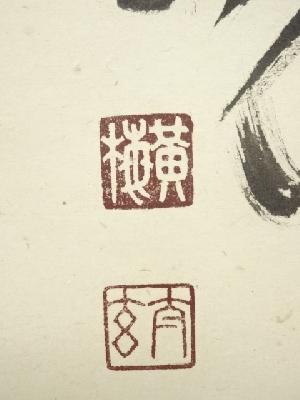表具裏の上部・本紙にごく薄いシミがあります。