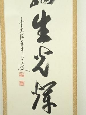 前大徳 大橋香林筆 「萬物生光輝」一行書 肉筆紙本掛軸(共箱)