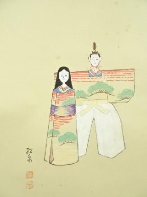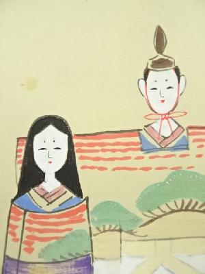 大徳寺 小堀卓巌筆 立雛画賛 肉筆紙本掛軸(共箱)