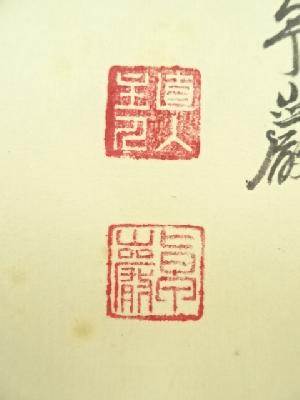 本紙・表具裏の全体に点々とシミがあります。