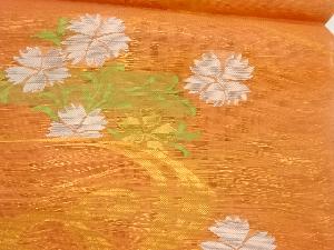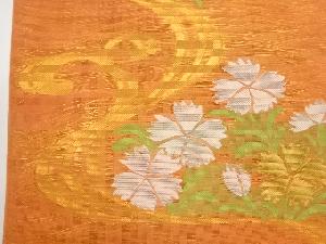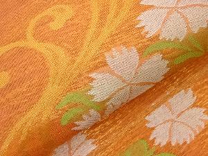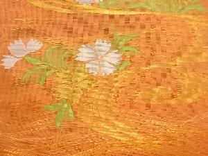 紗 草花に流水模様織出し全通袋帯