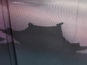 未使用品 仕立て上がり 満月に寺院模様訪問着
