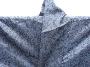 未使用品 裂取りに花唐草模様織り出し十日町紬着物