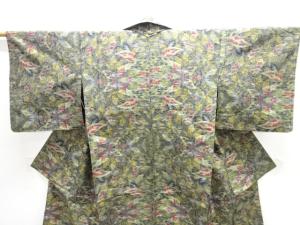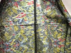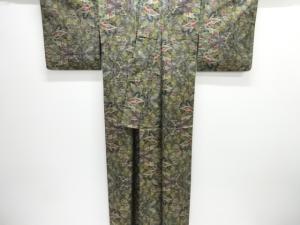 草葉模様織出し十日町紬単衣着物