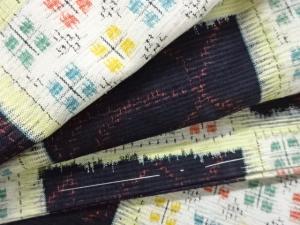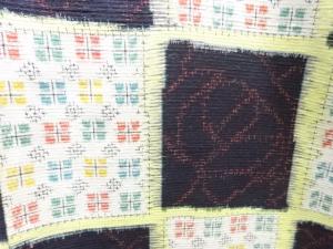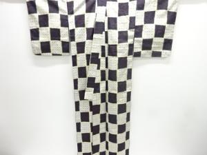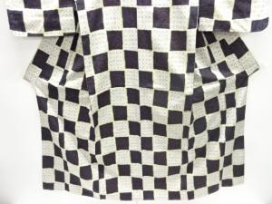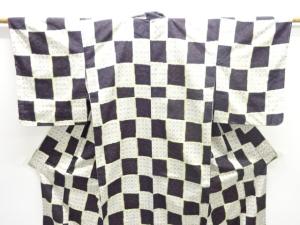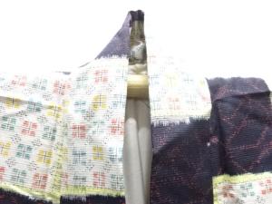 未使用品 格子に薔薇模様織出し十日町紬着物