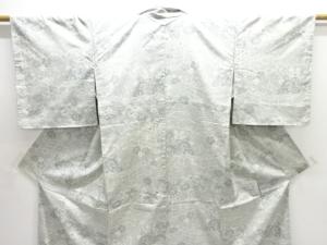 JAPANESE KIMONO / UNUSED WHITE OSHIMA TSUMUGI / WOVEN FLOWER & PANEL