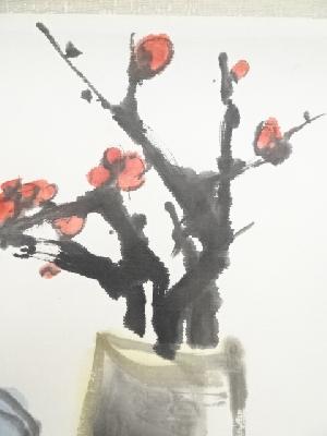JAPANESE HANGING SCROLL / HAND PAINTED / UME BLOSSOM