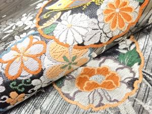 JAPANESE FUKURO OBI / WOVEN FLORAL PLANTS