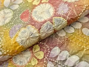 Silver threads are woven into fabric.