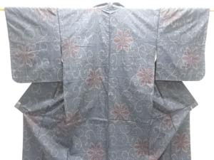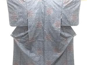 JAPANESE KIMONO / ANTIQUE KIMONO / SILK / DORO OSHIMA TSUMUGI / WOVEN FLORAL ARABESQUE