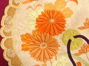 JAPANESE KIMONO / ANTIQUE BOLT FOR NAGOYA OBI / SILK / EMBROIDERY / KIKU