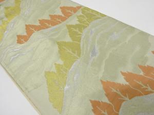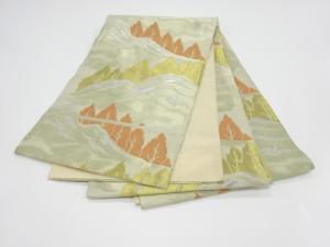 JAPANESE KIMONO / ANTIQUE FUKURO OBI / WOVEN MOUNTAIN & TREE