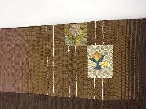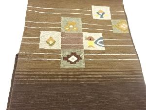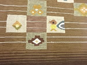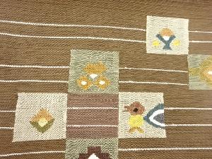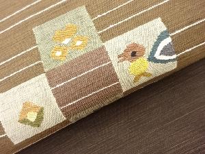 JAPANESE NAGOYA OBI / TSUMUGI / WOVEN ABSTRACT FLOWER & BIRD