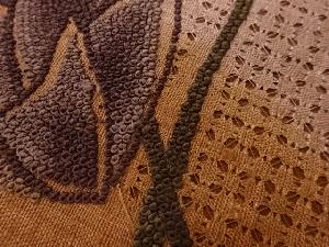 JAPANESE NAGOYA OBI / TSUMUGI / EMBROIDERY / FLORAL PLANTS