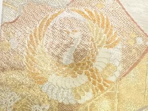 JAPANESE KIMONO / ANTIQUE FUKURO OBI / SILK / WOVEN CRANE & FLOWER