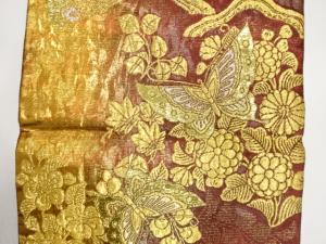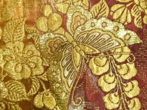 • JAPANESE FUKURO OBI FOR FURISODE / WOVEN CAMELLIA & BUTTERFLY