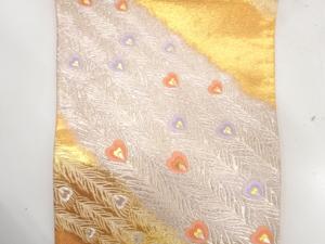 JAPANESE FUKURO OBI / AURORA FOIL / WOVEN PEACOCK FEATHERS