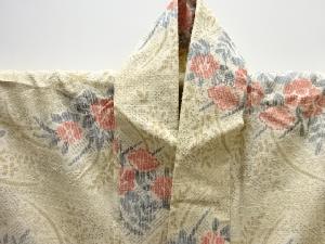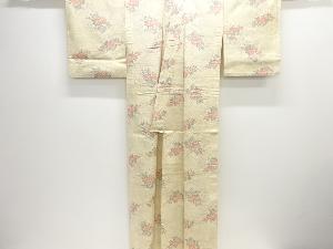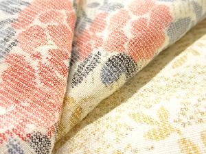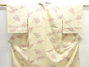 草花摸様織り出し手織り紬単衣着物