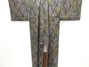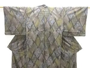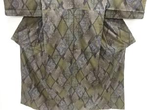 ダイヤ柄に花鳥模様織り出し本場泥大島紬着物(9マルキ)