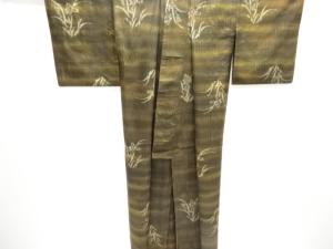 草花模様織り出し手織り紬単衣着物