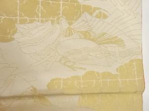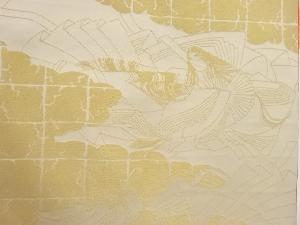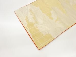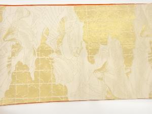 雲に人物・格子模様織出し丸帯