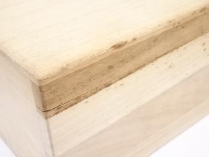 木箱にシミがあります。