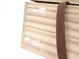 木箱の側面にシール跡があります。