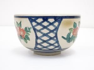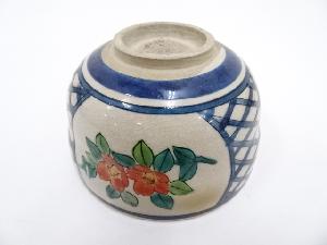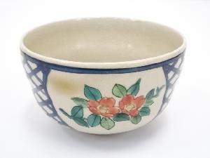 九谷焼 陽山造 色絵椿茶碗(共箱)