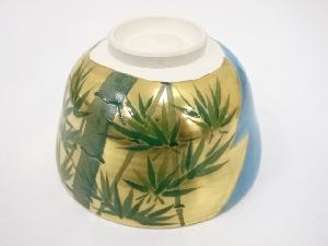 京焼 東雲窯造 松竹の絵金地茶碗(共箱)