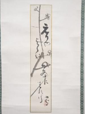 橋本関雪筆 俳画 肉筆紙本短冊掛軸(保護箱)